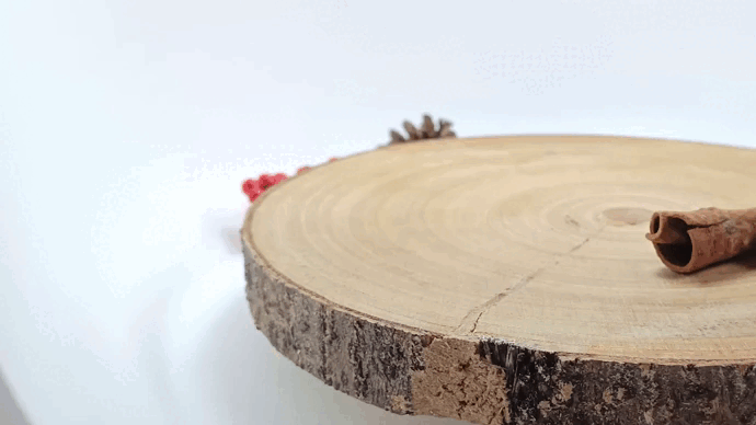 Matériaux :Plateau de bois ou rondelle d'arbre, copeaux de bois, quelques feuilles d'arbre séchées...